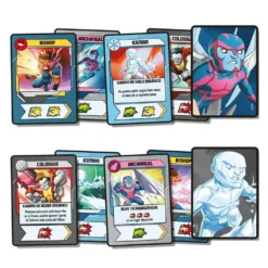 – 4 Hero Miniatures, 1 Villain Miniature, 4 Locations, 48 Hero Cards, 1 Villain Board, 12 Master Plan Cards, 6 Threat Cards, 1 Damage Board, 6 Team Mission Cards, 1 Attack