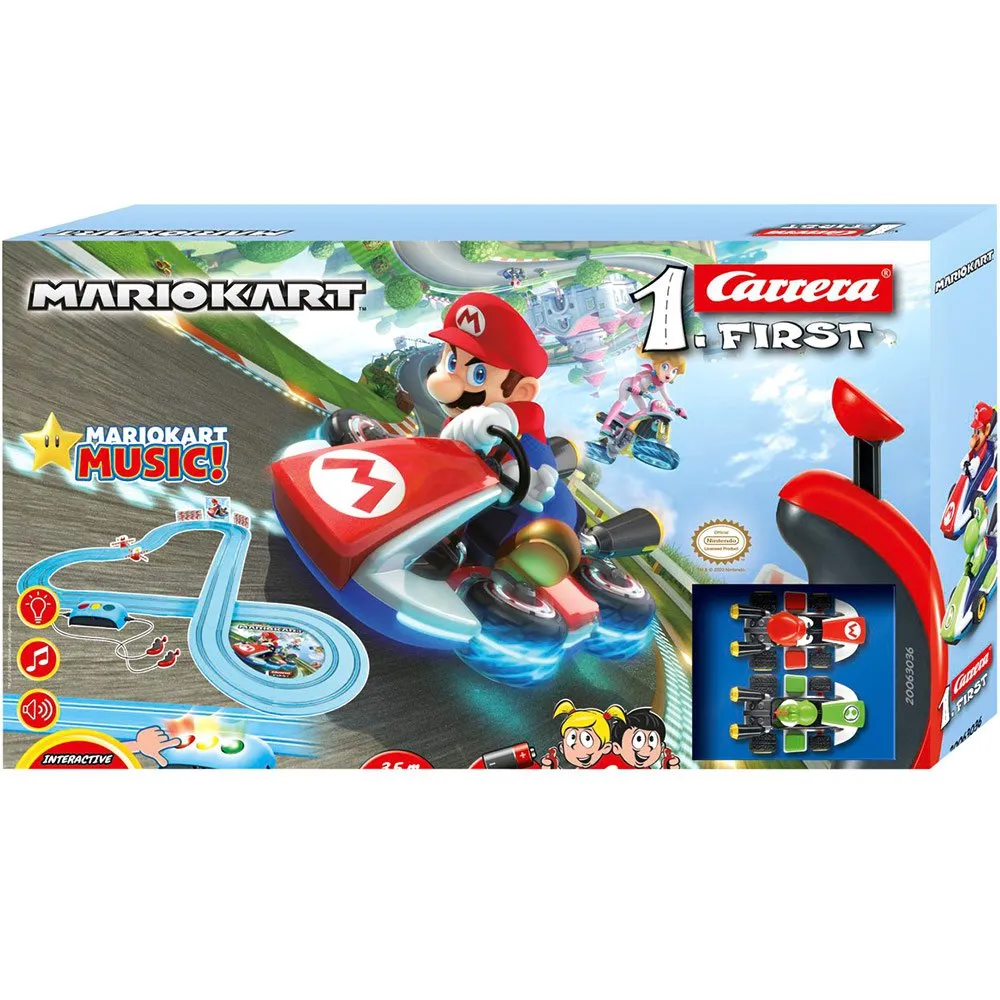 Your first own racetrack – in the style of Nintendo Mario Kart. Bring the characters from the popular game to life and let them race exciting races on your Carrera FIRST.