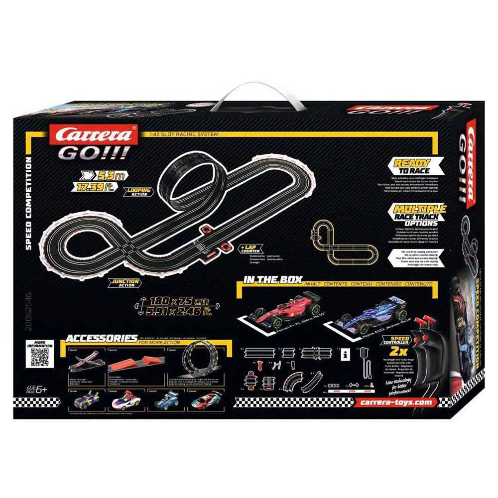 – The Carrera Go Set ´´Speed Competition´´ Promises 5.3 Metres Of Pure Racing Fun. Speed Competition´´ Set You Can Look Forward To Pure Formula 1 Driving Fun With This Carrera Set. In ´´Speed Competition´´, The Alpine A522 ´´Alonso, No.14´´ And The Ferrari F1-75 ´´Sainz, No.55´´ Race Around The Track Just Like Their Big Names And Give Everything To Cross The Finish Line First.