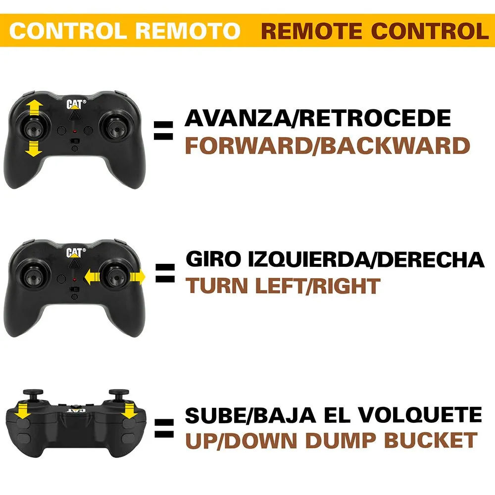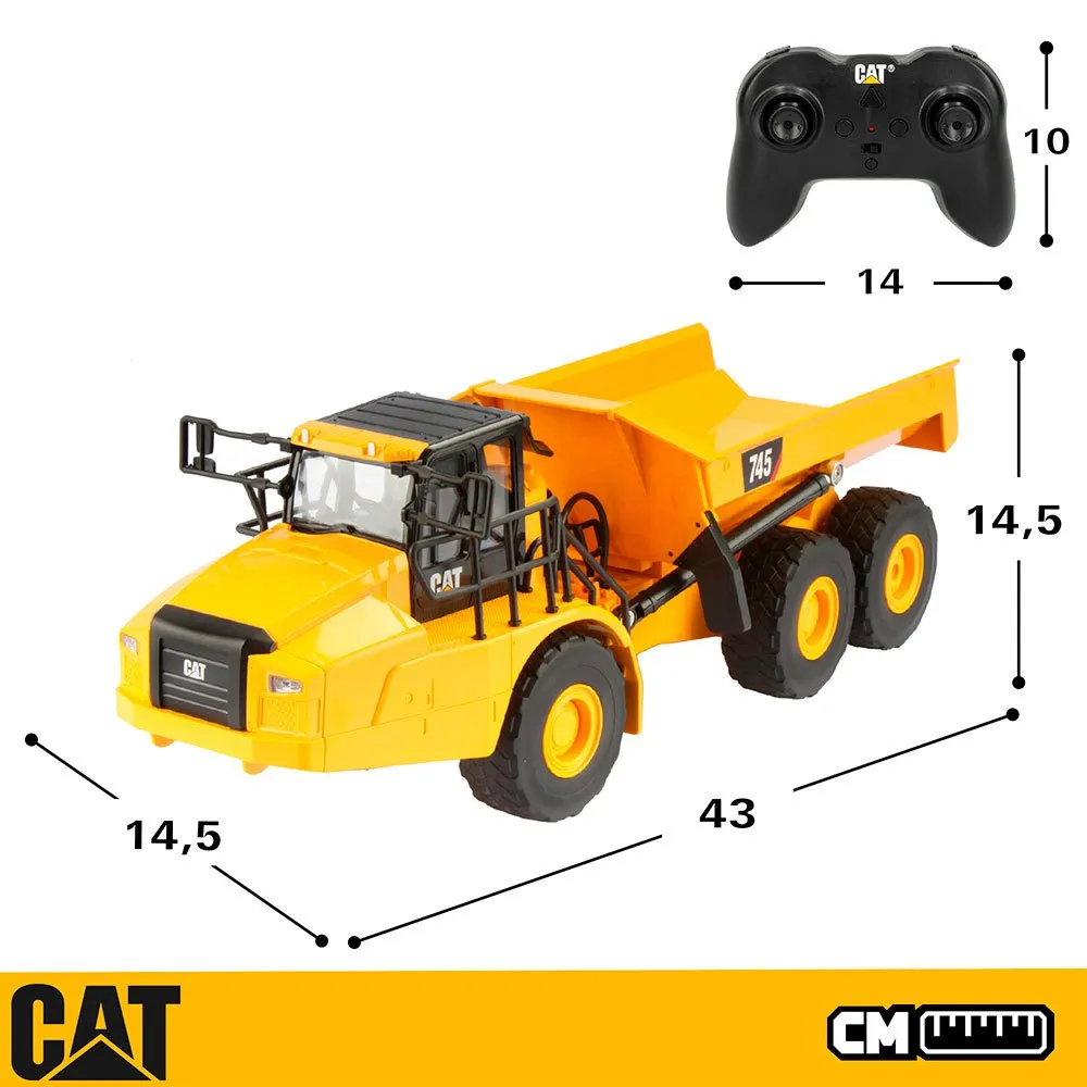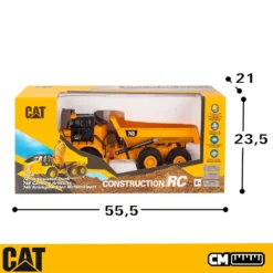 Play and enjoy with the CATERPILLAR construction vehicles! With this 1:24 scale articulated dump truck you can load the heaviest items, it works with a radio control system with 2.4 GH frequency and has a range of 35 meters.