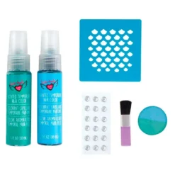 – This complete kit makes it easy, fast, and fun. First, spray on the scented mist of the hair color, add the shimmering eyeshadow with the double-ended sponge applicator, and finish with the galaxy face tattoos.