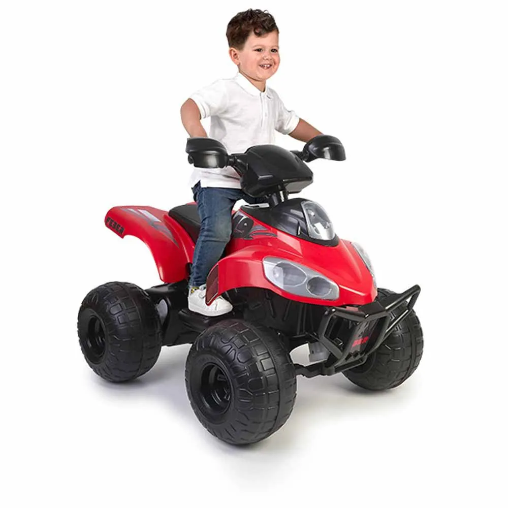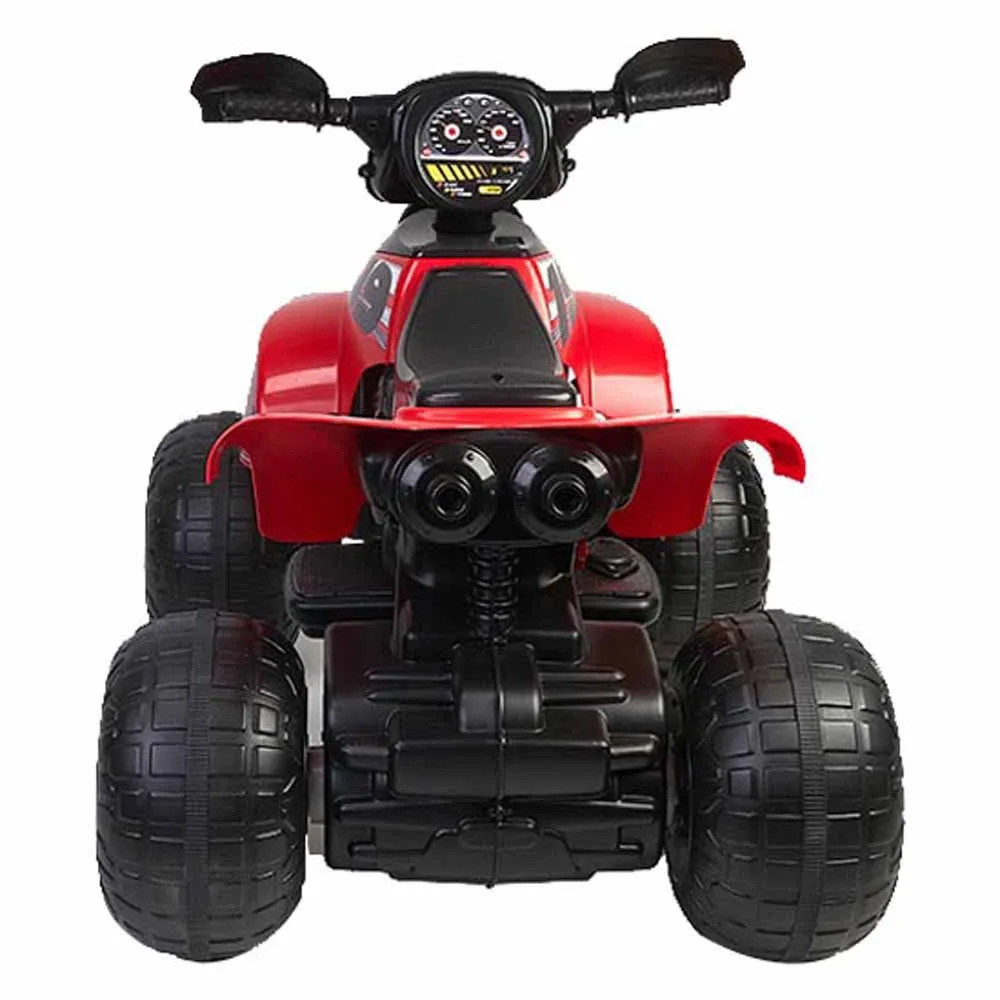 Quad Motion 12V includes forward and reverse gears, a foot brake and imitation halogen lamps.
