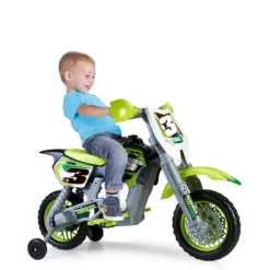 – FEBER Rider Cross, an electric motorbike that includes a foot pedal for accelerating, an electric brake and training wheels for more stability.