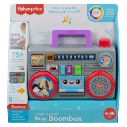 Turn it up, baby! The Laugh & Learn® Busy Boombox from Fisher-Price® is a pretend stereo loaded with hands-on activities, lights, music and sounds for your mini-me to explore at home or while traveling.