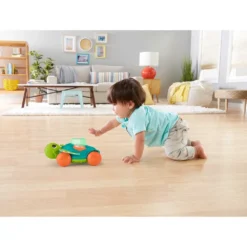 – Light-up, press-and-go sea turtle rolls forward and talks to encourage baby to crawl and chase