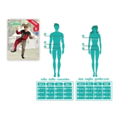 This original and economical Harlequin circus-themed Carnival costume is a costume that will make you the center of any costume party or event thanks to the high quality of its fabrics, its many details and its ornamentation and filigree.