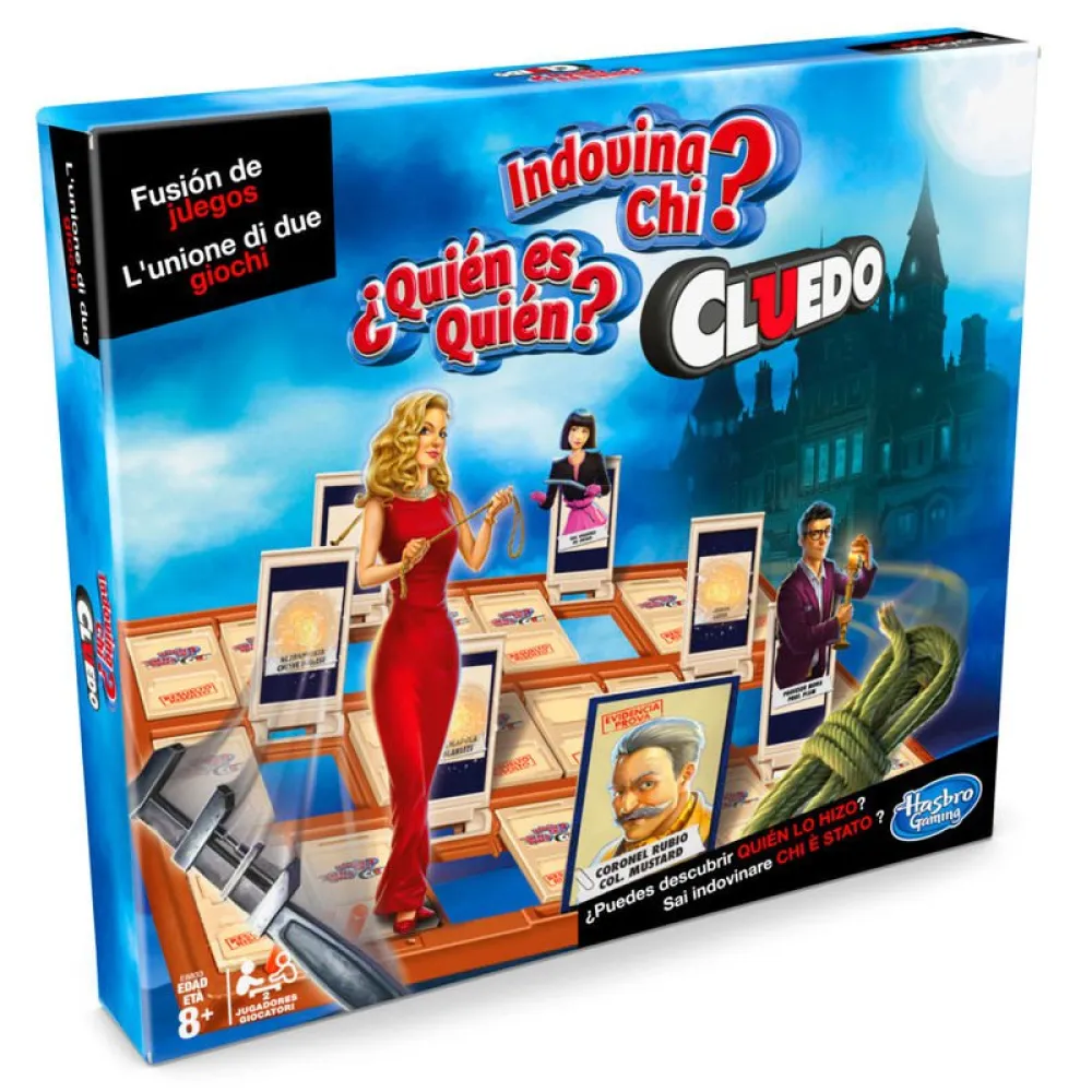 Its a board like the one in the Whos Who game with the characters, weapons and rooms from the game Cluedo.