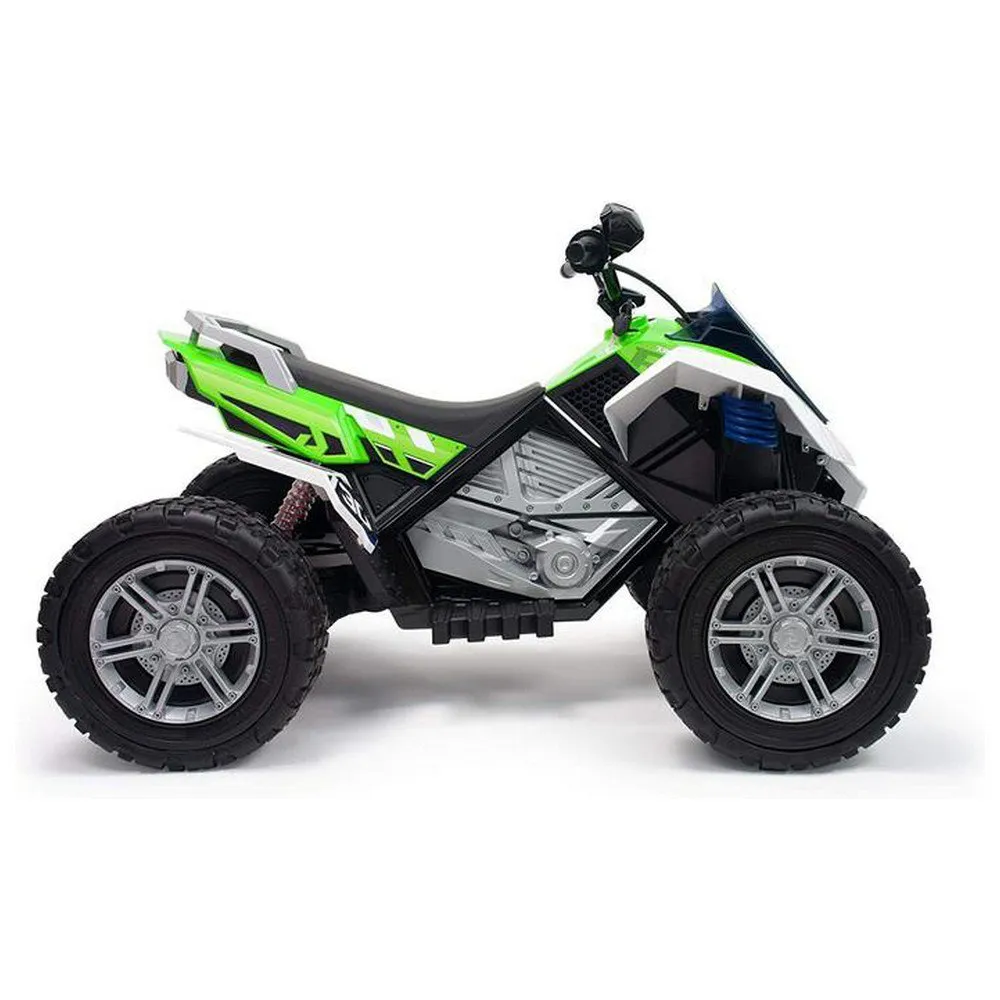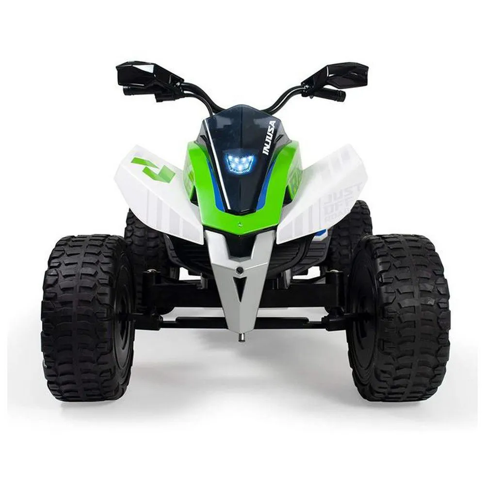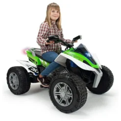 The rage 24v quad has suspension and rubber tyres added to the wheels for a better grip on the surface, providing greater stability to the vehicle. its wheels are made with eva rubber, making them puncture-proof. it also has front and back lights, offers two speeds, and – a fundamental characteristic – it can reverse, making it easy to handle.