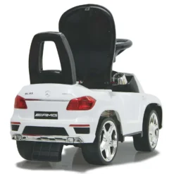 This cute 2-in-1 push-car Mercedes-Benz AMG GL63 from Jamara is an excellent gift for toddlers. The ride-on car combines the authentic appearance and horn with motor sound, making it appealing and suitable for children. Your little one will also love the front and rear lights. This ride-on car, made of high-quality materials, is very stable and safe. It has a comfortable synthetic leather seat, including storage underneath it. Colour: White Material: Plastic, metal Dimensions: 65,5 x 39 x 28 cm (L x W x H) Seat height: 25 cm Weight: 4,15 kg Synthetic leather seatwith red stitching With push-and-hold bar with backrest and side guard With front and rear light With horn sound and motor sound With storage under the seat Silent tire Tilt prevention Illuminated dashboard Assembly is easy but should be handled by adults Recommended age: 1 year and over Battery required: 4 x AA 1,5 V battery (excluded)