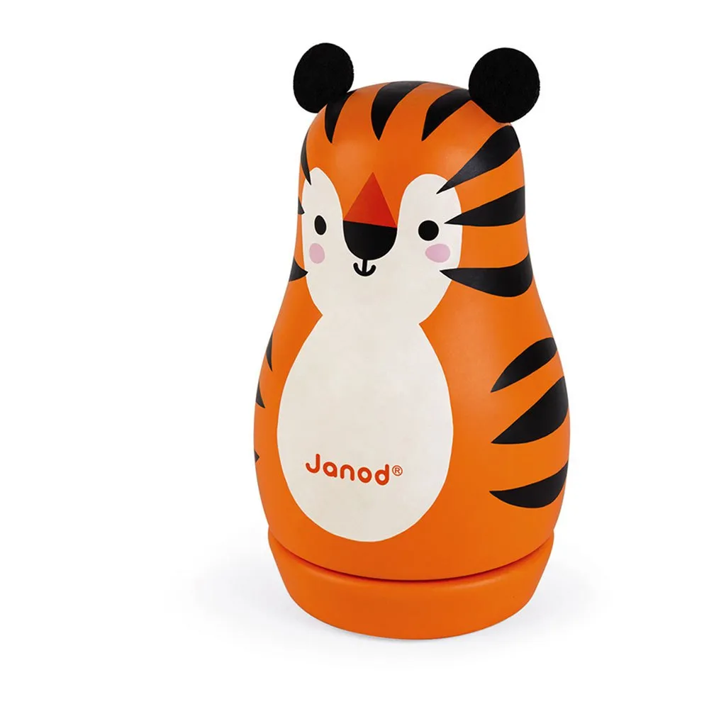 It spins around to the rhythm of the tune “Rock-A-Bye Baby”.