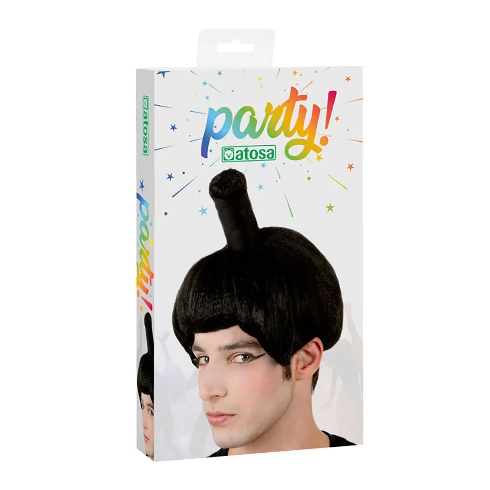 Smooth brown wig with bow, great for a wrestler, sumo or samurai costume.
