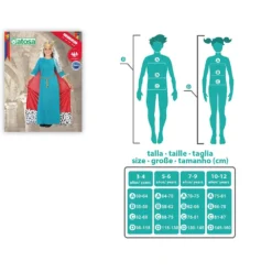 Party costume consists of 5 pieces:a crown, a mantilla, a belt, a dress and a cape.