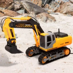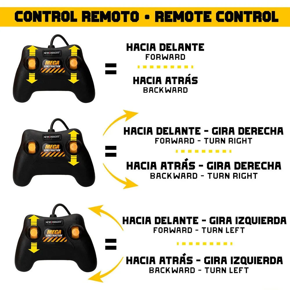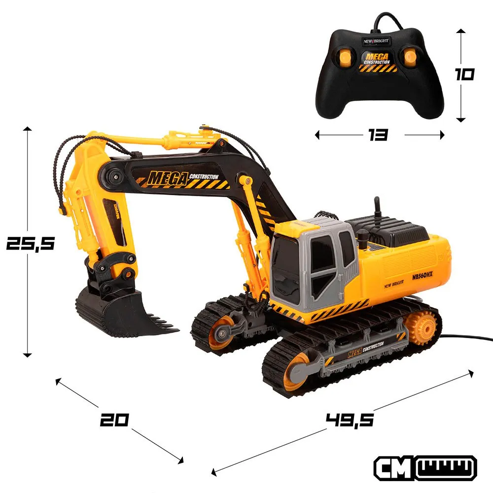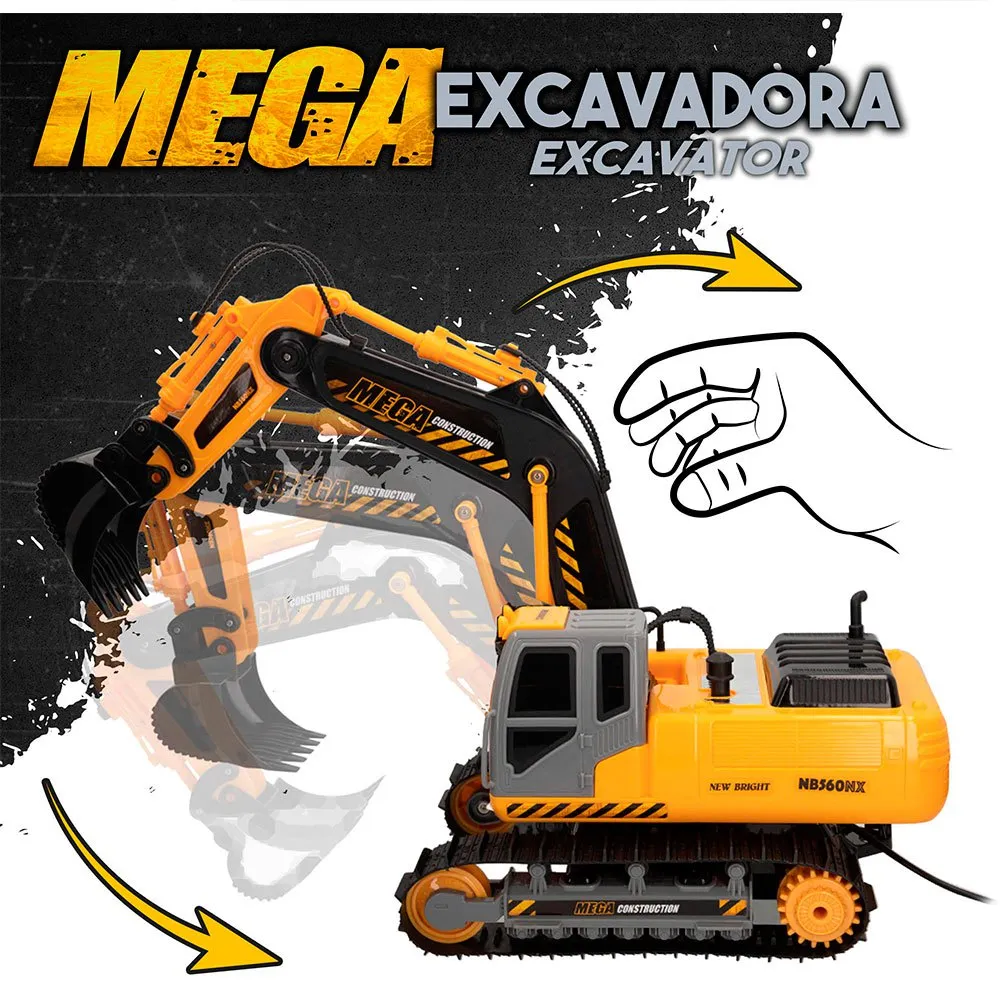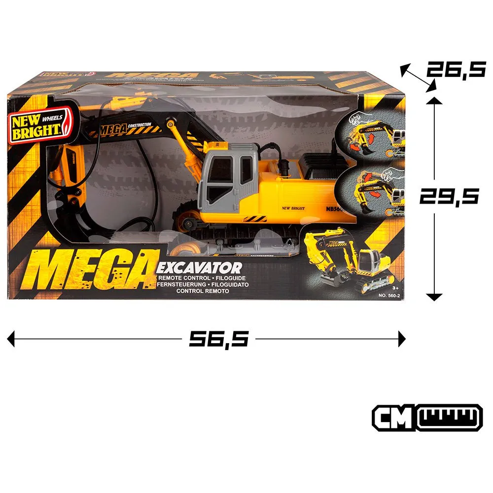 Run your own construction site with the New Bright Mega Excavator! This giant-sized excavator is cable-controlled and moves in 6 directionsThe cabin (which rotates 360º), the flexible arm and the bucket are raised manuallyIts wheels are chain type for greater stabilityIt has a realistic design and requires 4 AA batteries (not included)The cable measures 1.9 meters+3 years.