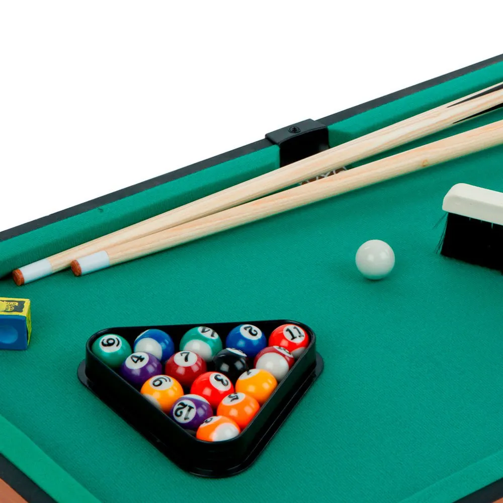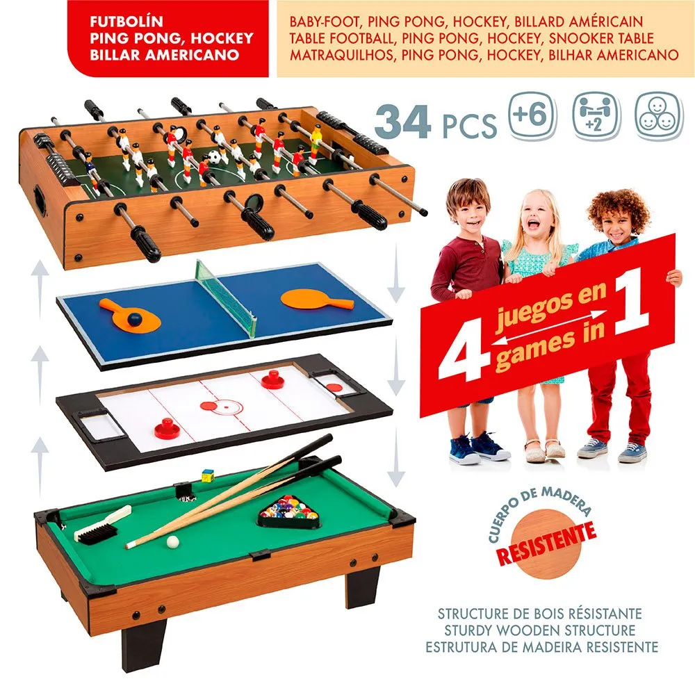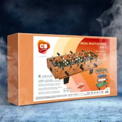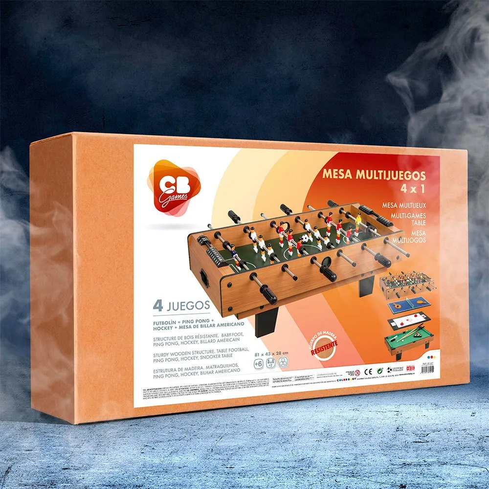CBgames multi-game tabletop game with wooden frame and 4 games with accessoriesPlay table football, billiards, ping pong or hockey in the same placeThe base of the games is billiards and on top of it the rest of the games are embeddedIts size is 79x43x67.5 cm and it is recommended for use by people over 5 years oldThe classic retro games to play as a family without leaving home.