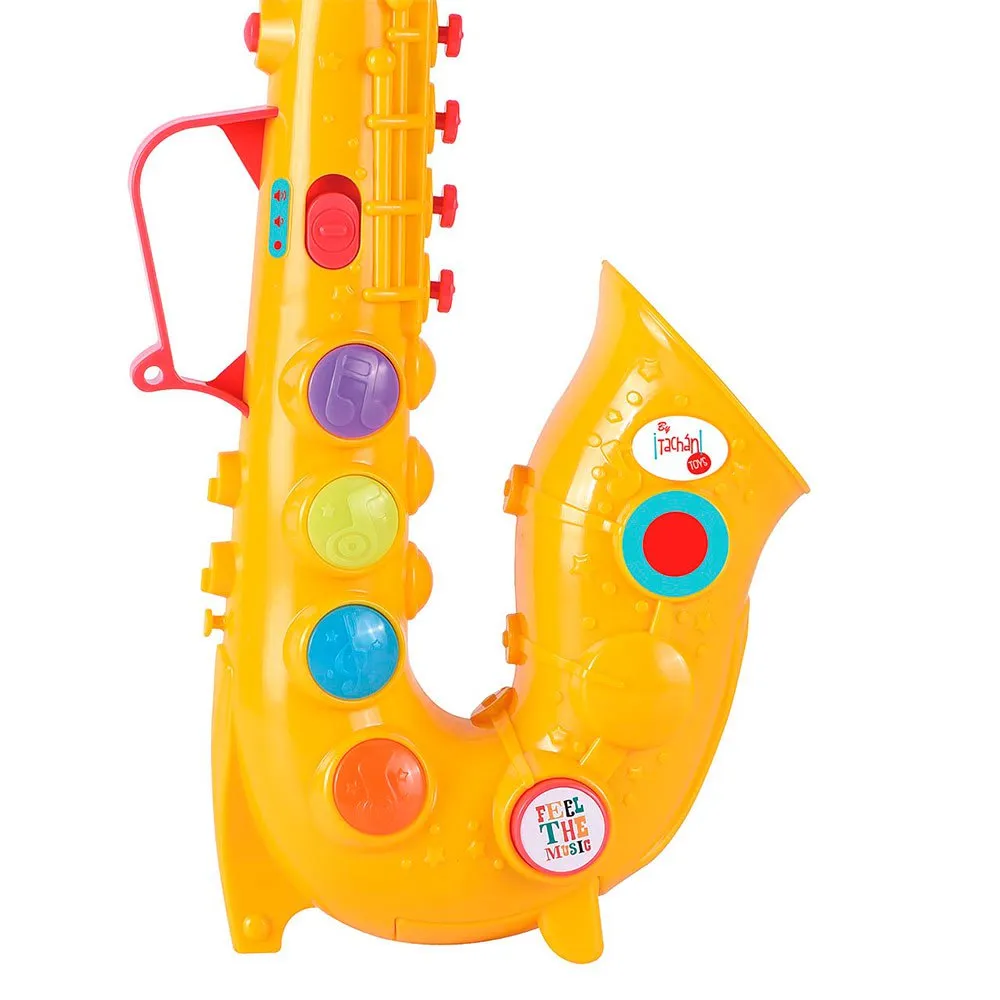 The saxophone is designed with 4 note keys plus a button with an octave.