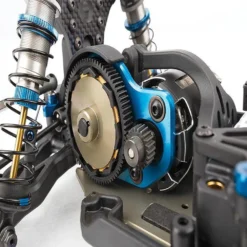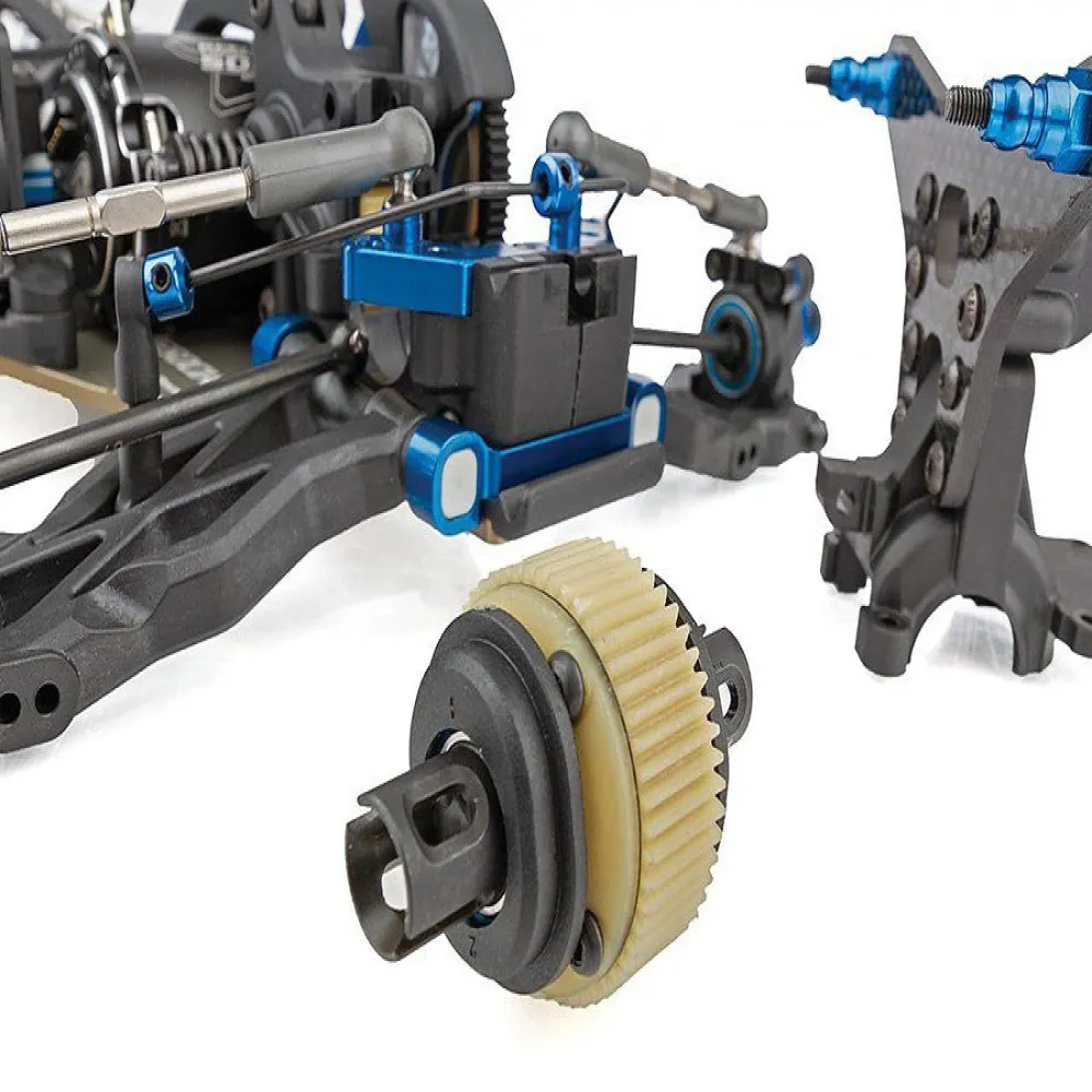 for smoother engagement on high-traction surfaces, +3mm chassis for added stability, steel chassis weights for tuning weight bias, front and rear anti-roll bars, and a gear differential.