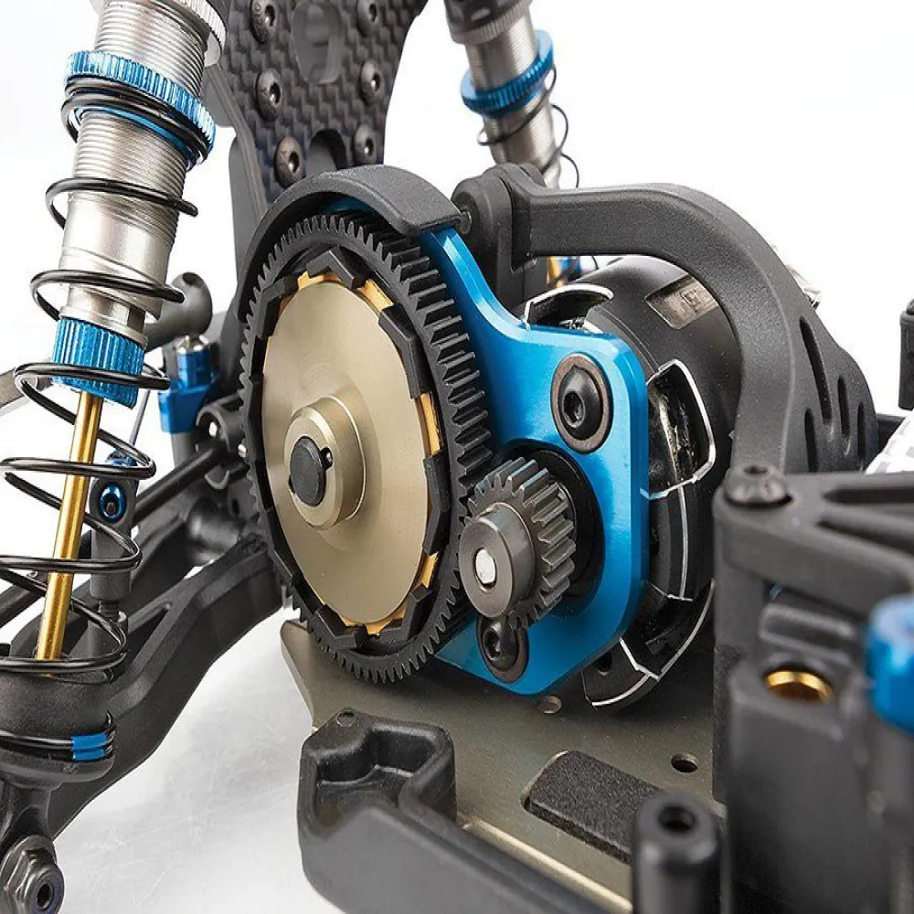 Octalock spur gear and 11mm Octalock LCF pads using the heavier RC10B74.1 slipper spring for maximum consistency and higher torque capacity.
