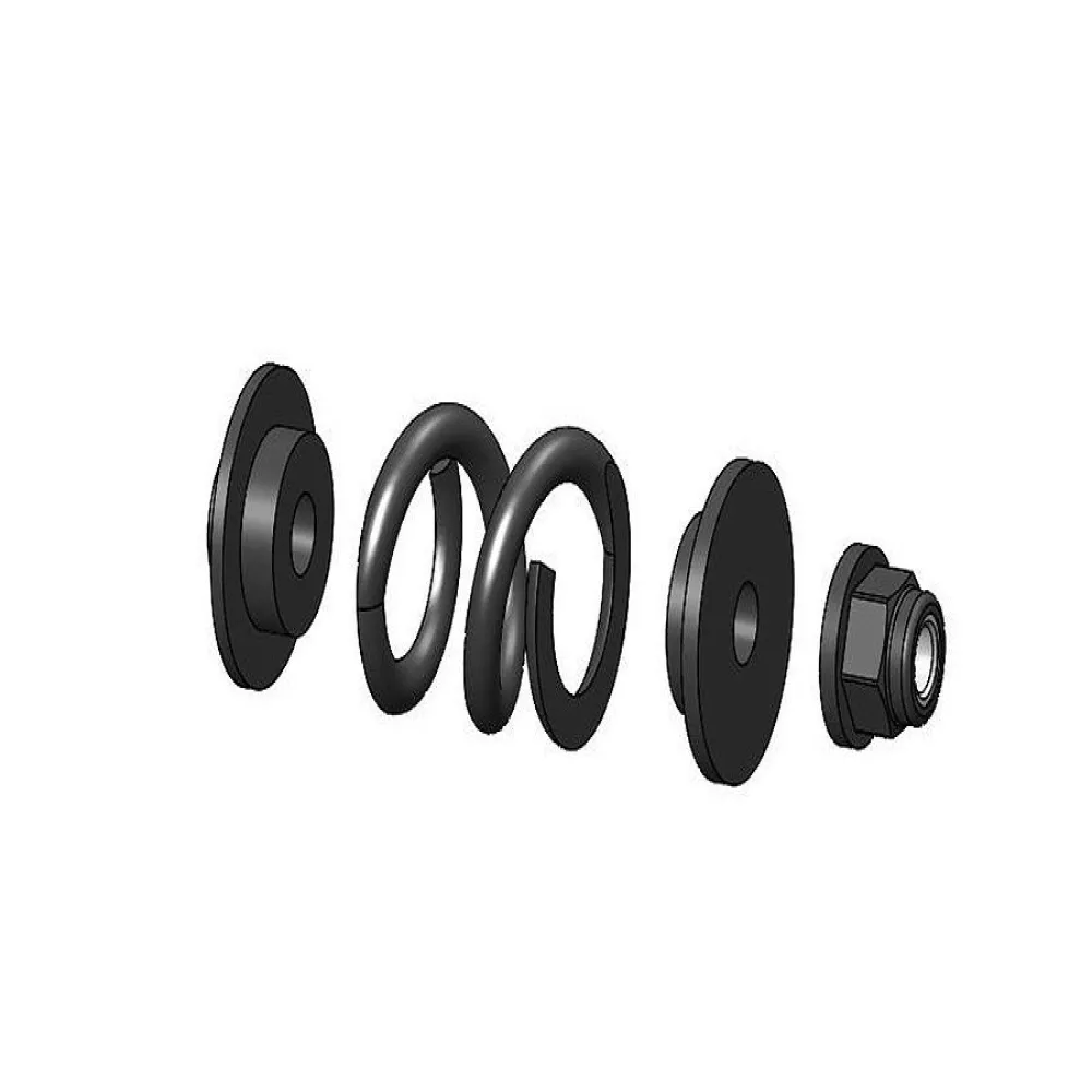 Set screw and flanged nut rear bottom shock mounting hardware for quick and easy shock removal.