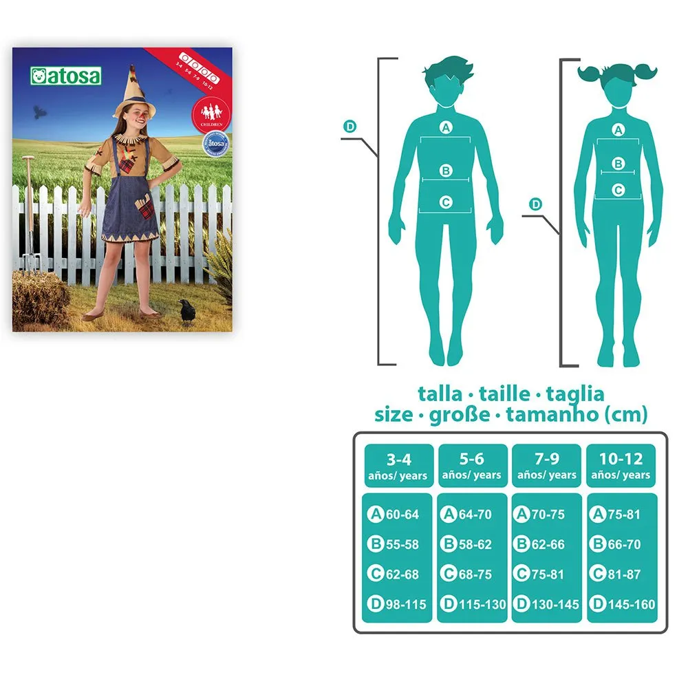 Children´s scarecrow costume for girls inspired by the story of the Wizard of Oz.