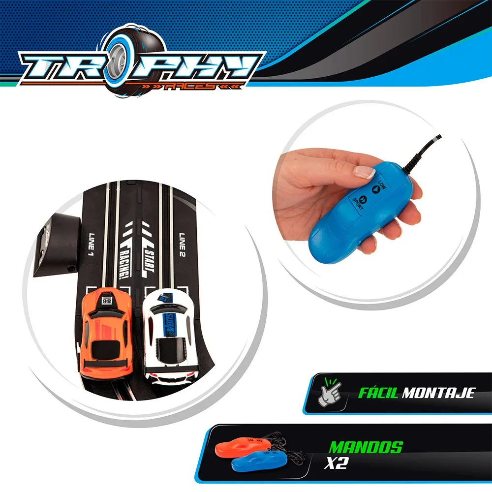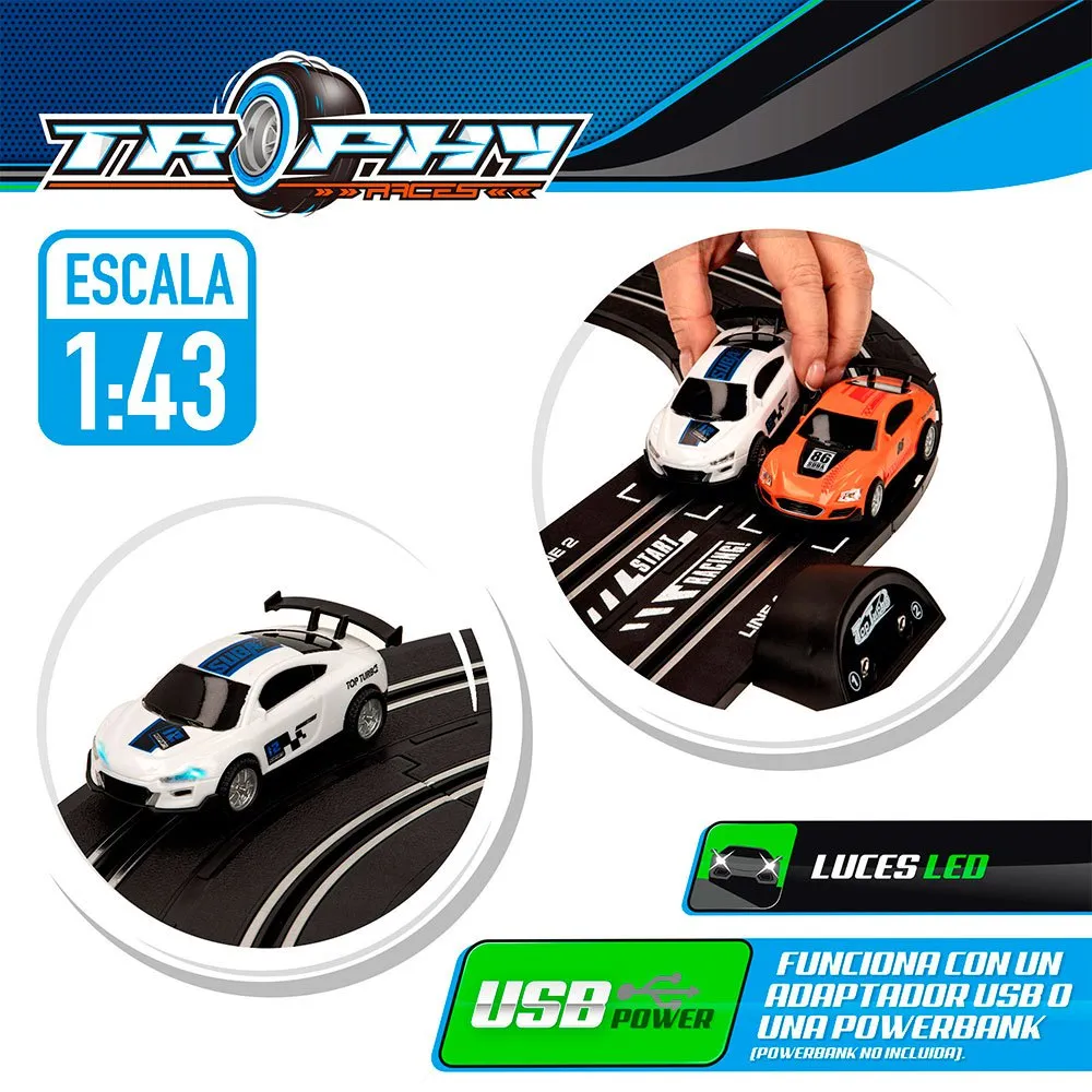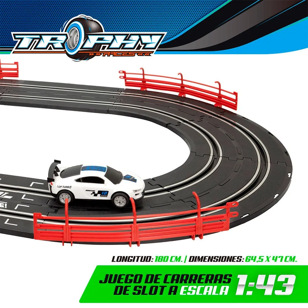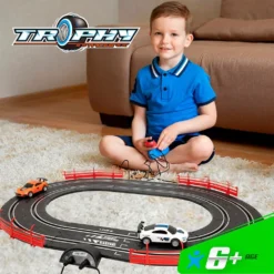 The champion of all races! Invite a friend to participate in the most fun car races with the electric track with 2 racing cars designed at 1:43 scale.