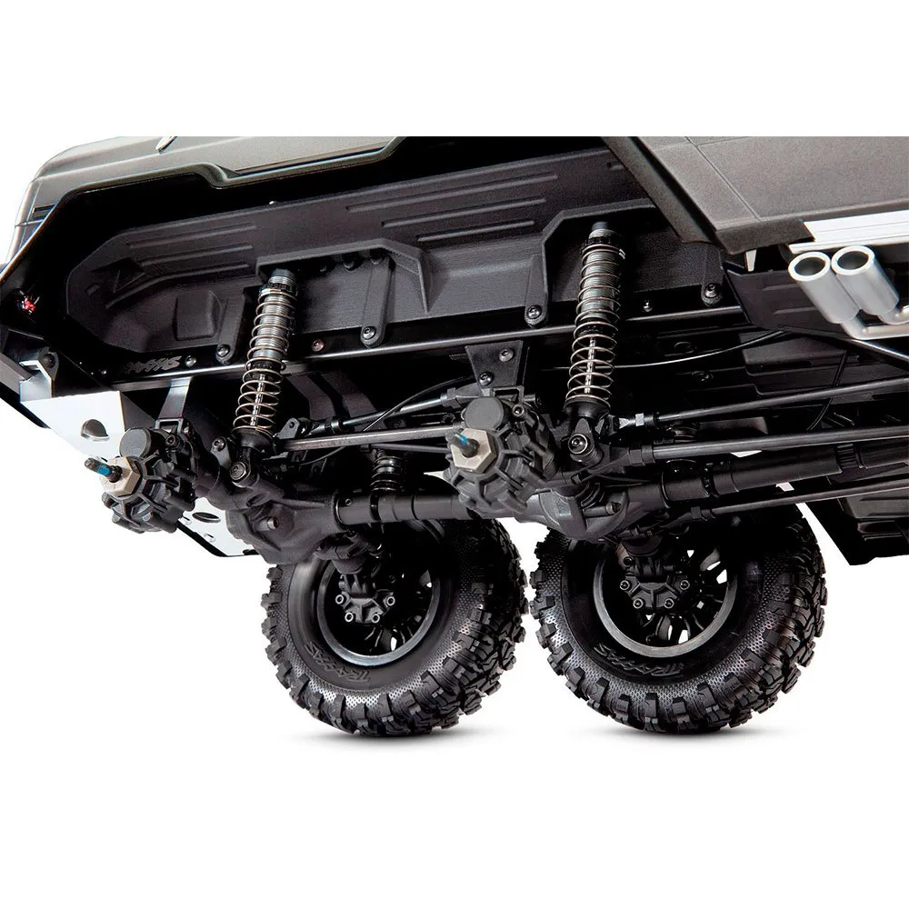Six drive wheels, three T-Lock remote-locking differentials, portal axles, high-low transmission, 6 aluminum long-travel shocks, and a stunningly accurate body with brilliant LED lighting make this the most advanced and capable RC crawler ever to hit the trail.
