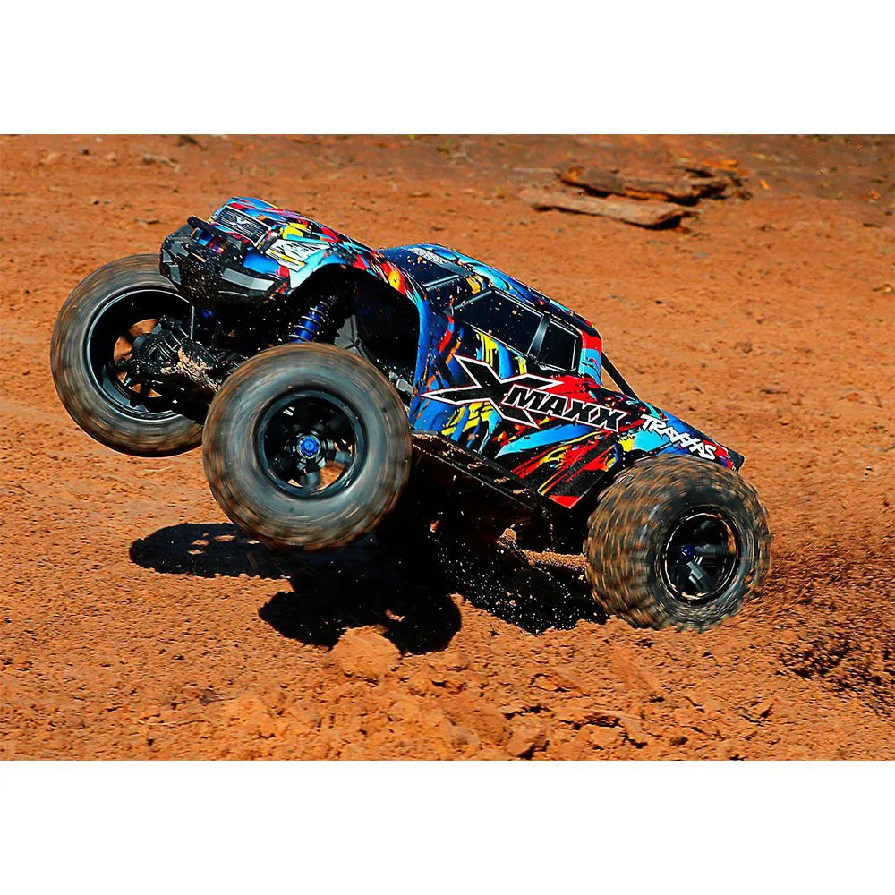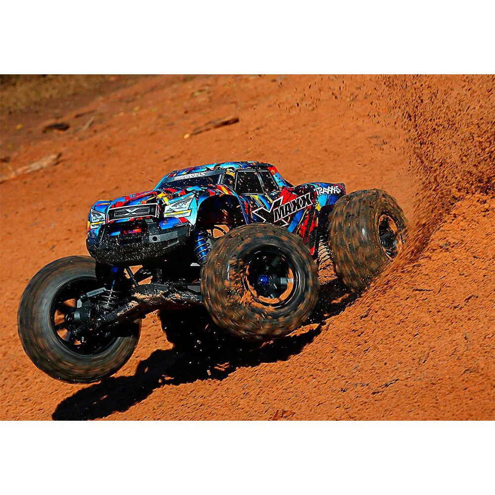 – At The End Of The Day, Size Always Wins. X-Maxx Plows Over Obstacles And Muscles Through Extreme Terrain That Leaves Lesser Trucks Stranded. Mammoth 8-Inch Tall Tires, Long-Arm Suspension, And Huge Ground Clearance Dwarf The Surroundings For Virtually Unstoppable Monster Truck Fun.