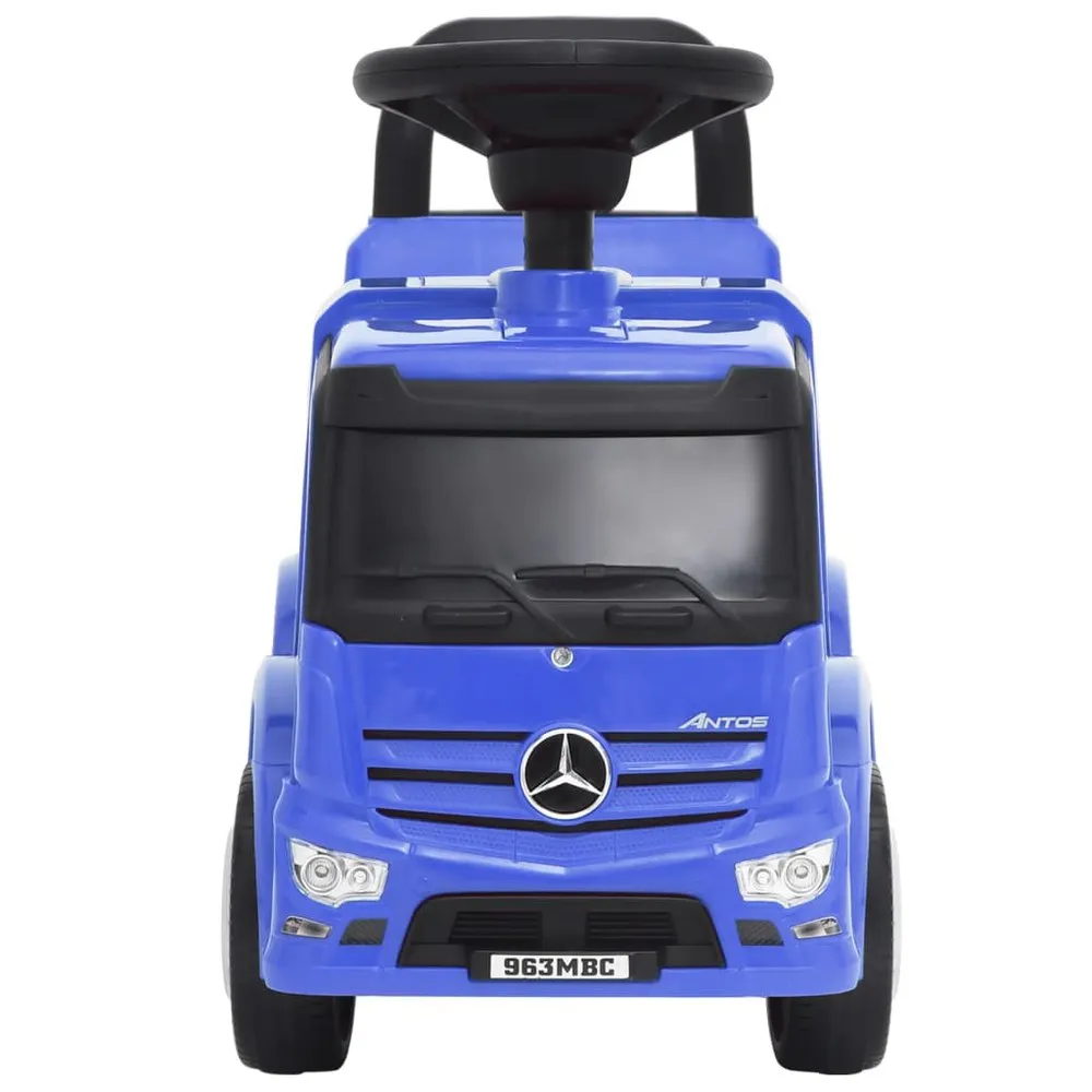 This super cool Mercedes-Benz step car, featuring iconic design, is a wonderful toy that gives your children the ultimate riding experience. It is officially licensed by Mercedes-Benz. The ride-on car has a steering wheel, a low-lying seat and an ergonomically designed backrest that makes it easy to get on and off. The backrest can double as a push bar for parents. The large storage space under the seat can accommodate a lot of toys and other supplies that your children would like to take along on their adventures. Thanks to its durable plastic construction, this push car can support up to 25 kg and is suitable for kids between 12-36 months. This toy car also improves your kids´ spatial awareness, dexterity and fine motor skills. Warning: THIS TOY HAS NO BRAKES! Note: 2 AA batteries are needed for the sounds. The batteries are not included in the delivery. Colour: Blue Material: Plastic Dimensions: 62 x 27 x 44 cm (W x D x H) Maximum load capacity: 25 kg Recommended age: 12-36 months Officially licensed by Mercedes-Benz Includes car horn, engine sound and front light Includes a storage compartment under the seat Battery required: 2 x AA battery (not included) Assembly required: Yes 3.WARNING: To be used under the direct supervision of an adult.