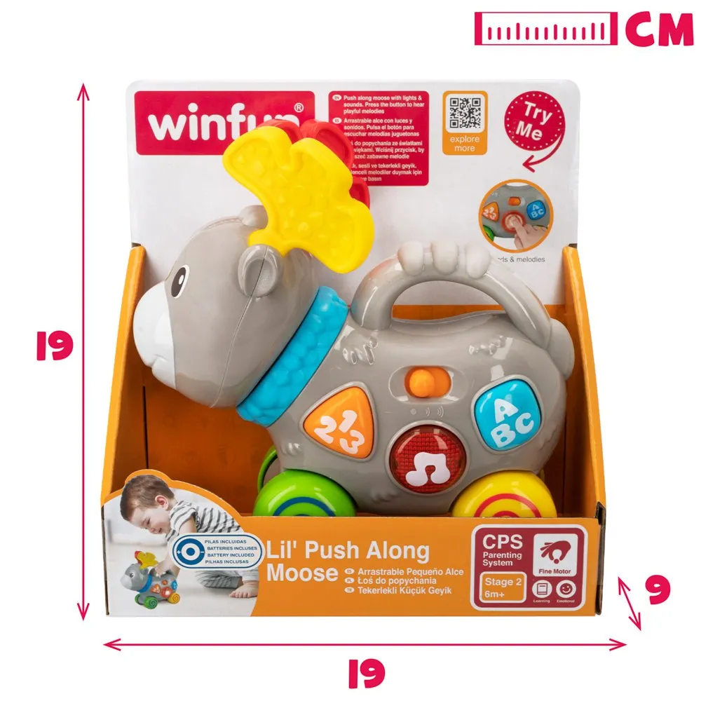 Crawling with this adorable elk from Winfun! Moose-shaped crawling toy your little ones can learn numbers and letters, as well as dance to the rhythm of sounds and melodies.